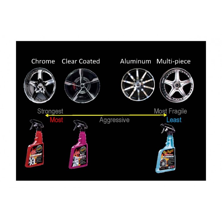 Meguiar's® Hot Rims™ All Wheel & Tire Cleaner is designed to be safe on all clear-coated wheels and wash grime with ease, leaving behind not only clean wheels, but clean tire sidewalls as well. Its unique foaming solution, Xtreme Cling™ is designed to cling to vertical surfaces and break down stubborn road residue on wheels & tires.